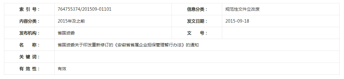 省國資委關(guān)于印發(fā)重新修訂的《安徽省省屬企業(yè)擔(dān)保管理暫行辦法》的通知