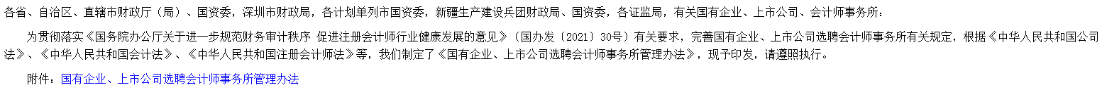【轉(zhuǎn)載-政策文件】關(guān)于印發(fā)《國有企業(yè)、上市公司選聘會(huì)計(jì)師事務(wù)所管理辦法》的通知